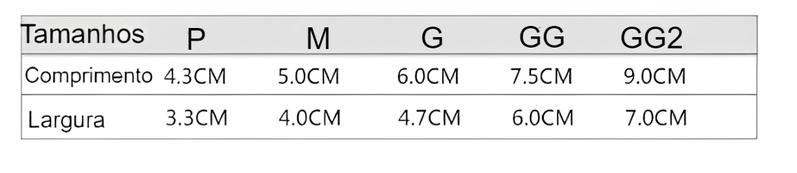 Siga rigorosamente a tabela de tamanhos. Observe bem as medidas.