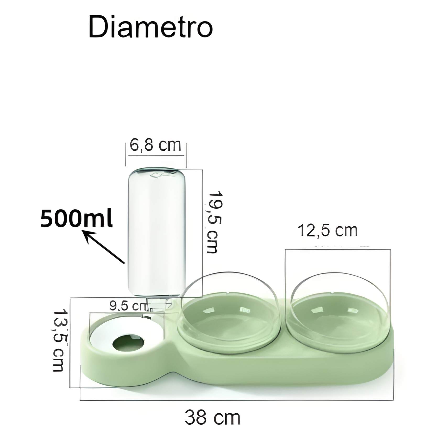 O alimentador tem um design de tigela dupla que permite uma alimentação fácil e eficiente, reduzindo a bagunça e garantindo que a comida e água do pet estejam sempre disponíveis.