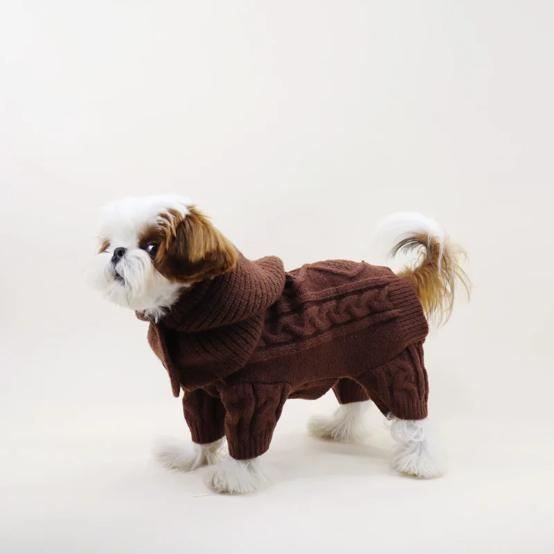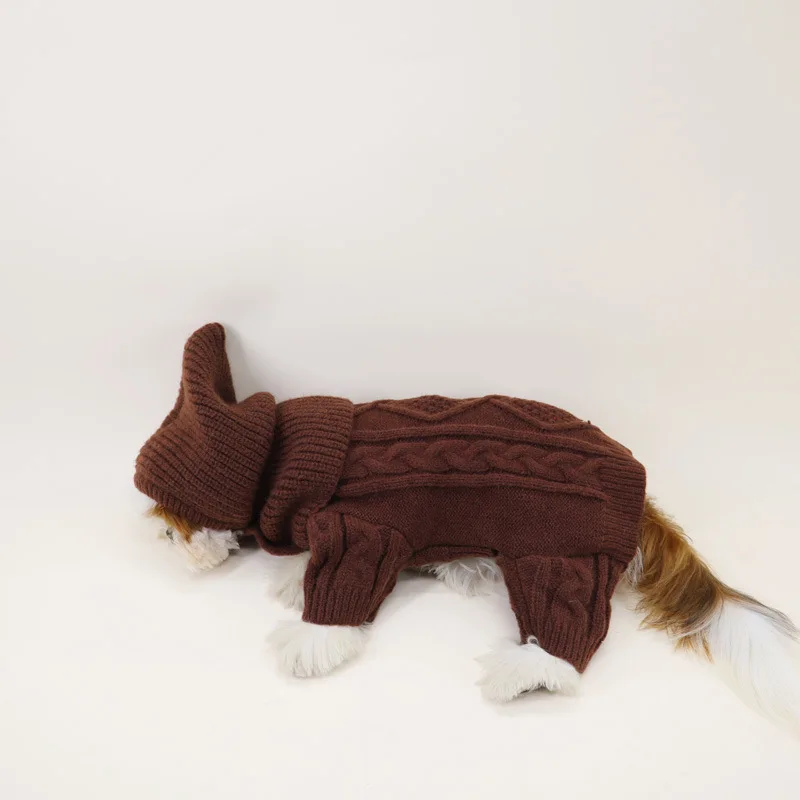 A camisola tricotada com chapéu para cães é perfeita para manter seu pet quentinho e estiloso durante o inverno. Com um design de quatro pernas e um chapéu fofo, essa camisola proporciona conforto e proteção contra o frio para o seu melhor amigo de quatro patas.