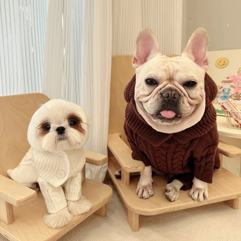 🐾 Garanta já a sua camisola tricotada com chapéu para cães e faça do seu pet o mais fashionista do bairro! 🐾