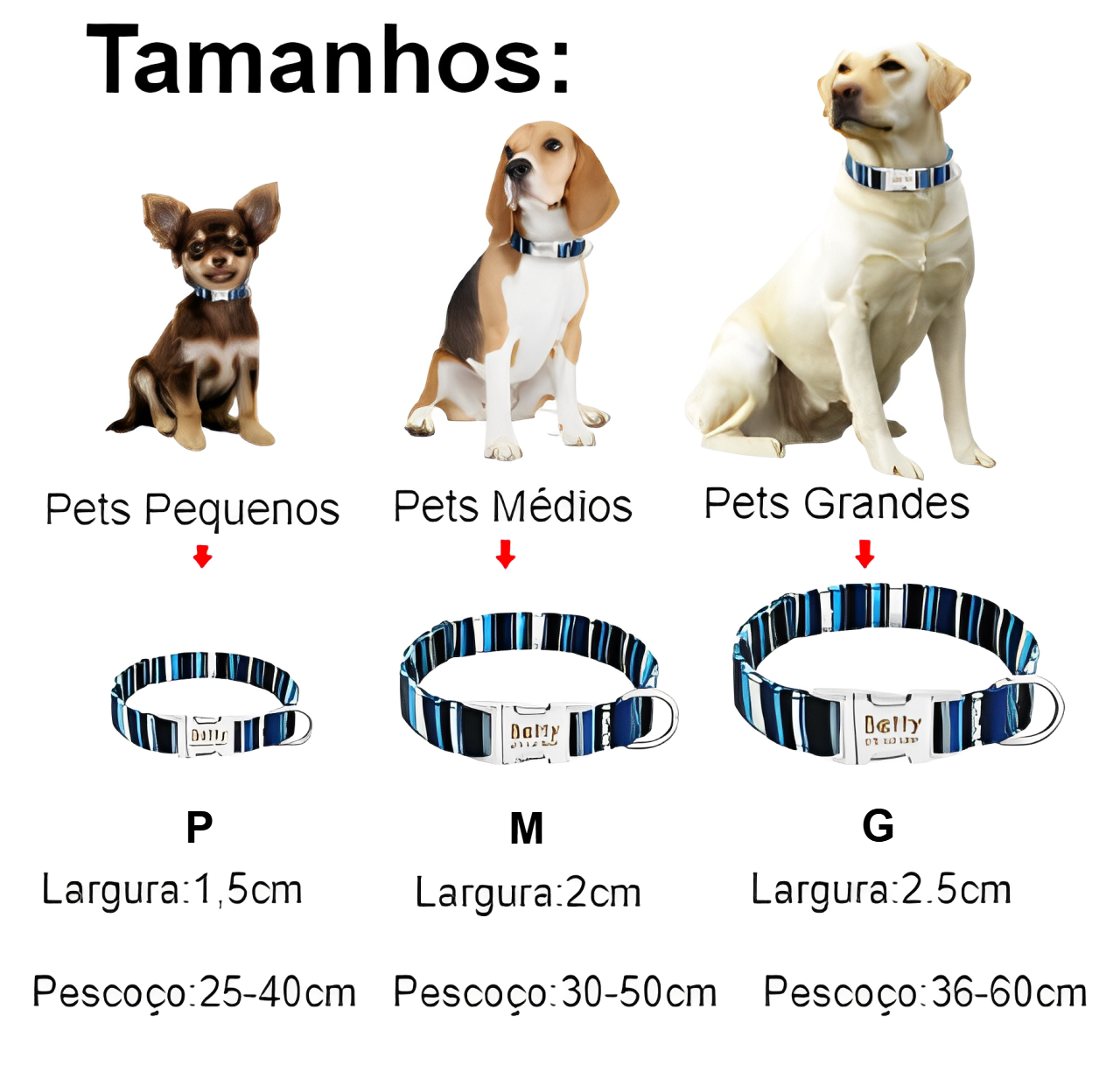 Feita em nylon resistente e durável com fivela em metal reajustável e estampa firme, não descolore a cor, ideal para pets de pequeno, médio e grande porte.