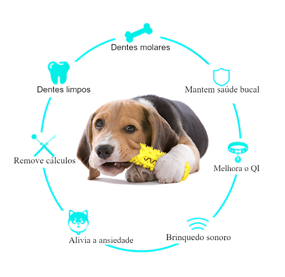 Adequa confortávelmente na boca do seu pet, fazendo uma higiene de 360 graus, ou seja limpa todos os lados.