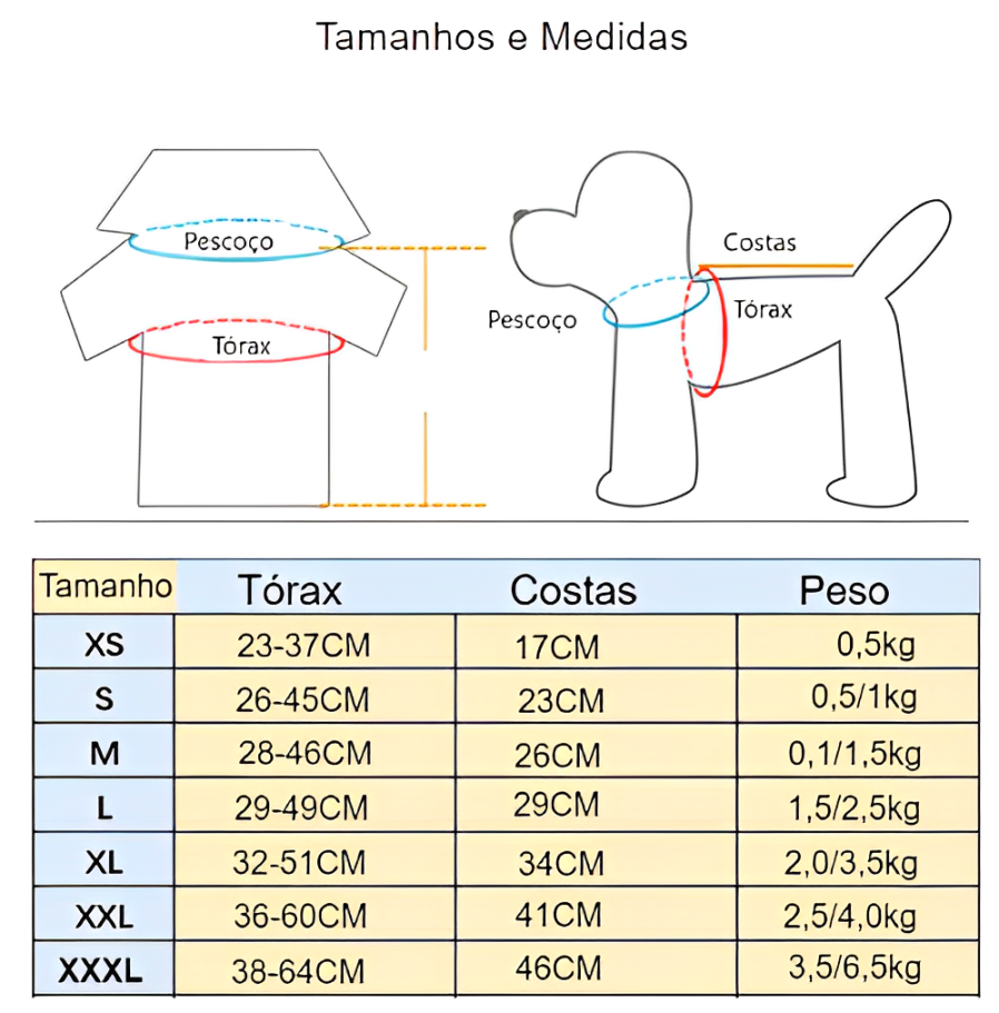 Os tamanhos variam, garantindo o ajuste perfeito para pets de todos os portes.