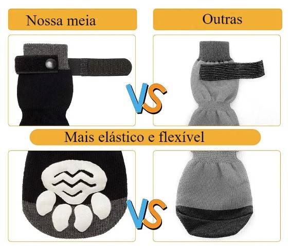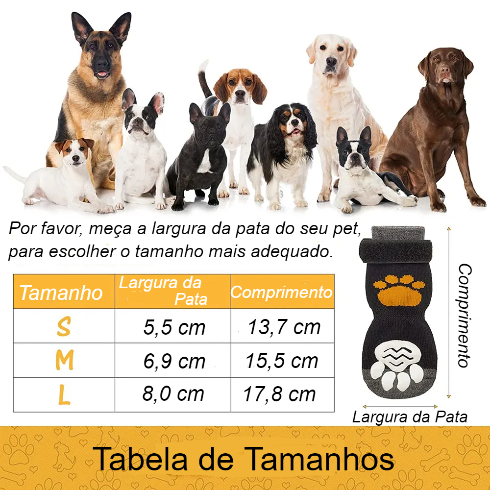 Além disso, essa meia foi pensada para todos os tamanhos de pets, desde os pequeninos até os maiores. Não importa a raça ou o porte, a meia antiderrapante é universal e se adapta perfeitamente a todos.