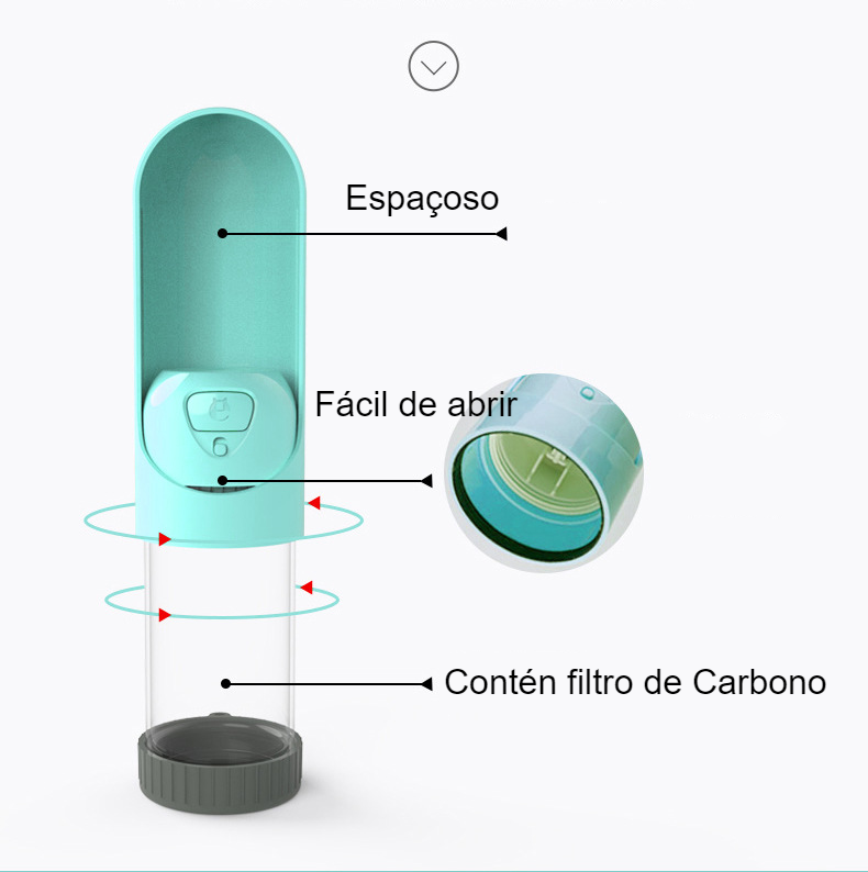 Com apenas um CLIC, para abrir e fechar, a água é projetada para a garrafa.