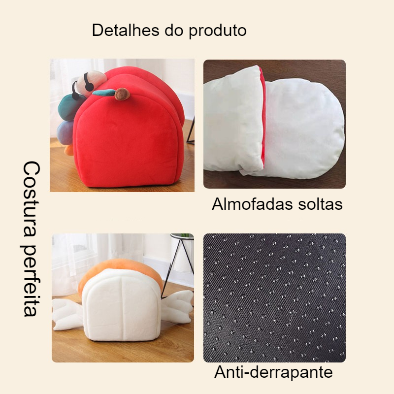 A cama é dobrável e feita de um tecido ecológico, cuidando do