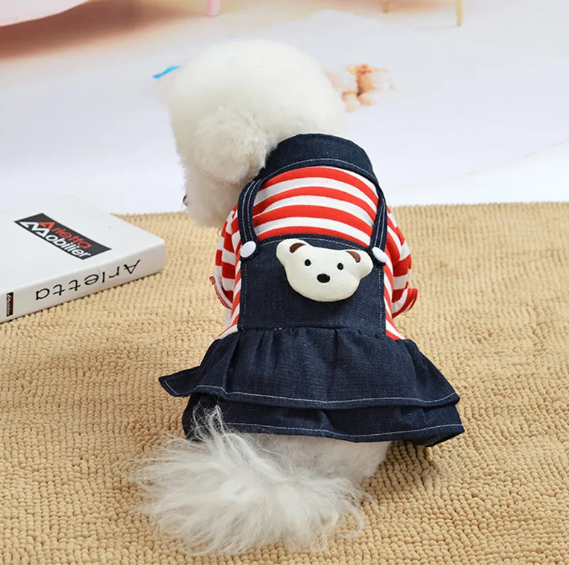 Sua pet vai ficar ainda mais linda e estílosa, com este vestidinho com blusa listrada, que pode ser usado em qualquer ocasião.