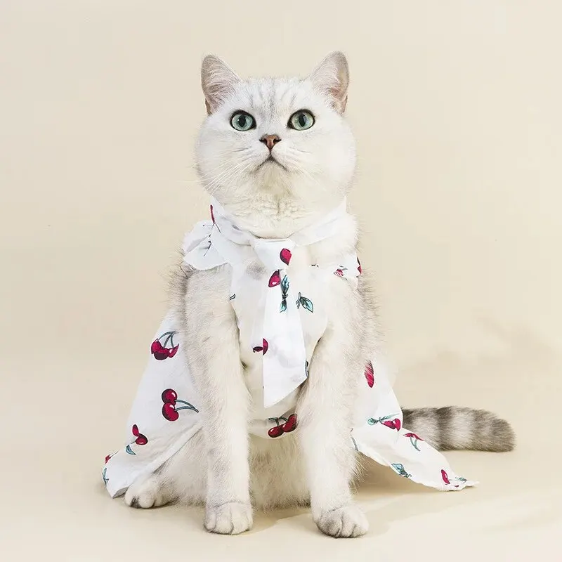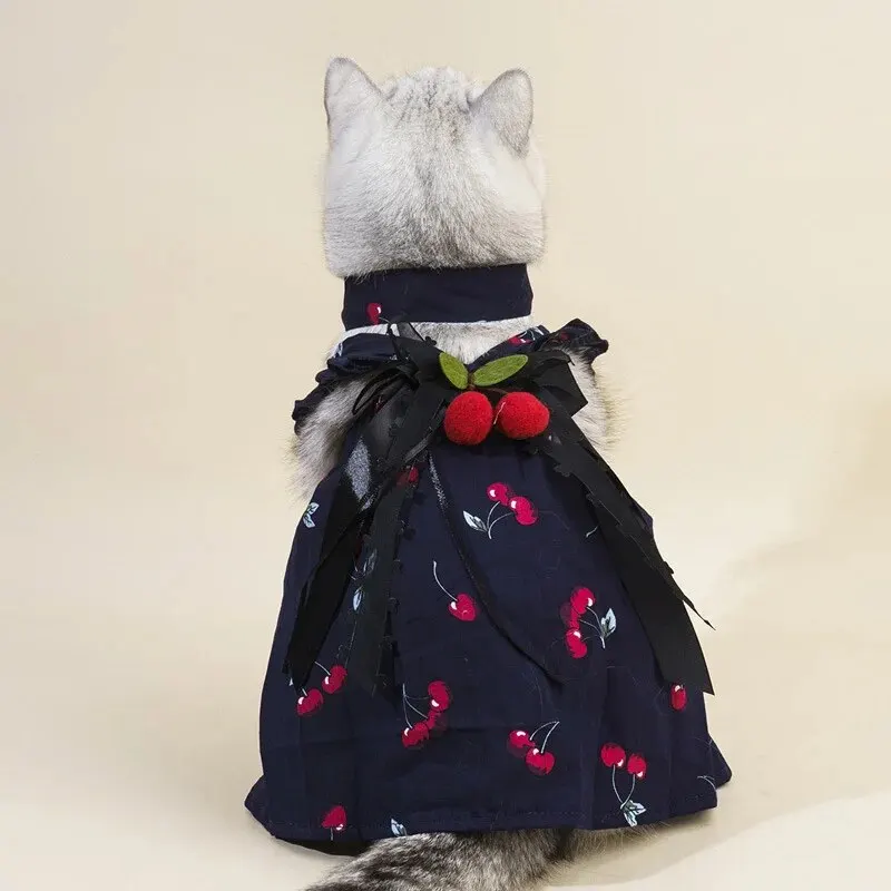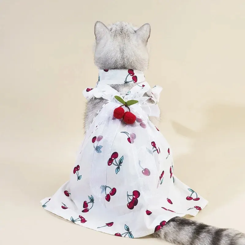 Dê um toque de estilo ao seu felino com este adorável vestido em estampas de cerejas!